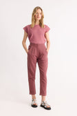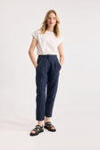 The Hush Pant is one of our most iconic and enduring styles, representing a cornerstone of our classic collection. Designed with a flattering silhouette and tailored details, it combines timeless elegance with exceptional comfort through an elasticated back waistband. Sitting at the true waist, it features a fly-front fastening with our signature square-covered button, folded cuff hems, angled side pockets, and delicate tuck details at the waist—striking the perfect balance between refined tailoring and ease of wear. Crafted from a linen-cotton self-check fabric and available in three seasonal colourways, the Hush Pant is an essential piece for a versatile, capsule workwear wardrobe.
