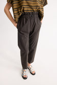 Effortlessly stylish and endlessly comfortable, the Nightshade Pant features a relaxed silhouette with a gathered paperbag waist and soft elastic waistband for the perfect fit. Designed to sit high on the waist, this flattering shape adds subtle volume and pairs beautifully with fitted tops or tucked-in layers. A versatile wardrobe staple, ideal for everyday wear or elevated styling. Crafted from a beautiful chocolate brown Merino wool suiting.
