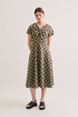 Introducing the Reverie Twist Dress - a timeless midi style featuring an elegant twist-front detail, bias-cut skirt, and back zip closure. Designed to flatter through subtle structure and fluid movement, this piece embodies effortless sophistication. Crafted from a luxurious yarn dyed twill fabric with a beautiful handle, the Reverie Twist Dress offers easy, graceful dressing for the Autumn season.