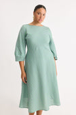 The Solar Dress is our favourite dress to accompany you to weddings, parties, celebrations of all sorts this Spring. Featuring sculptural rounded sleeves, a boat neckline and an a-line midi length skirt silhouette, this style is comfortable and elegant. Crafted from a beautiful lightweight cotton gingham, expertly cut on the bias.