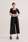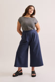 A Kuwaii favourite, the Sullivan Pant combines comfort and versatility in a timeless silhouette. Designed to sit at the true or lower waist, it features a wide-leg shape, deep functional pockets, front tucks, and an elasticated back waistband for effortless wear. This season, it is crafted from a winter-weight wool blend seersucker in navy and black, perfect when paired with a simple knit for a polished winter look.