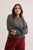 The Trixie Top combines effortless elegance and comfort. Crafted from a deadstock viscose blend stripe fabric knitted in Melbourne, this lightweight top works beautifully for layering under tops and outerwear, or styled on its own with trousers. Featuring a boat neckline, gathered sleeves, and wide cuffs, the Trixie Top is a versatile piece you’ll reach for season after season.