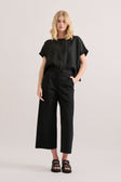 The Wide Leg Tailored Pant, introduced in 2018, is the second iteration of our classic pant. This style is designed with a perfect cropped length to showcase a winter boot or a statement shoe. It tends to fit slightly larger than the original Tailored Pant, making it a great option for those between sizes. Our plus-size customers particularly appreciate the fit and shape of the Wide Leg.