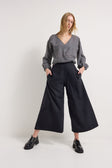 These are just the best pants - the cut is amazing - so flattering yet so comfortable. I have 1 wool pair in giant gingham beige from a couple of years ago, and 1 black linen pair. I have just ordered the charcoal wool and I'm so excited for the versatility of the solid dark colour. I prefer the wool to the linen as it doesn't crumple and really holds it's shape even after a few wears (and being wool it doesn't need to be washed after every wear). I'm excited to try the chambray soon!